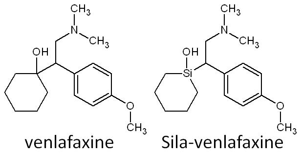 [26] J. O. Daiss, C. Burschka, J. S. Mills, J. G. Montana, G. A. Showell, J. B. H. Warneck, and R. Tacke, ¡°Sila-venlafaxine, a sila-analogue of the serotonin/noradrenaline reuptake inhibitor venlafaxine: Synthesis, crystal structure analysis, and pharmacological characterization¡±, Organometallics, Vol. 25, pp. 1188-1198, 2006.
